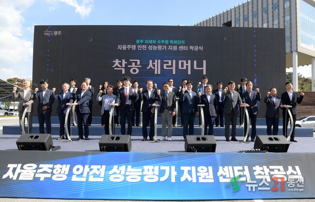 자율주행 안전 성능평가 지원센터 착공식 (사진=광주광역시제공)광주광역시는 30일 빛그린국가산업단지에서 광주 미래차 소재·부품·장비 특화단지 조성 사업의 하나로 ‘자율주행 안전 성능평가 지원센터’를 착공했다.