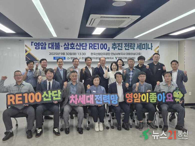 [뉴스21통신 김길용] 영암군(군수 우승희)은 지난 9월 30일 한국산업단지공단 전남서부지사에서 ‘대불·삼호산단 RE100 추진 전략 세미나’를 개최했다.