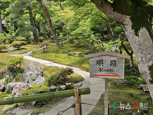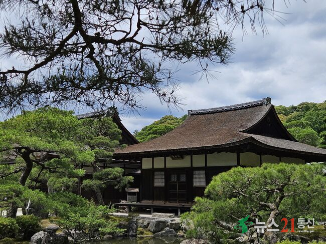 사찰 내부에는 은각이라 불리는 2층 목조 건물 외에도 일본 정원 예술의 정수를 담은 모래정원 ‘은사단(銀沙灘)’과 ‘향월대(向月台)’가 자리하고 있다. 사계절마다 다른 매력을 보여주는 정원은 특히 단풍과 설경으로 유명하며, 고즈넉한 분위기 속에서 고대 일본 문화와 미학을 체험할 수 있는 장소로 사랑받는다. 오늘날 은각사는 세계문화유산으로 지정돼 교토를 대표하는 명소 중 하나로 많은 관광객의 발길을 끌고 있다.