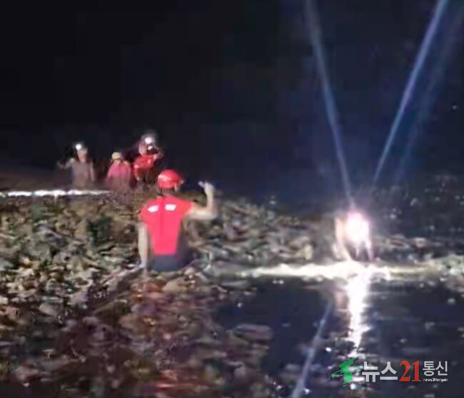 [뉴스21 통신=박민창 ] 전남 신안군 증도면의 갯벌에서 해루질을 하던 일가족 7명이 고립됐다가 해양경찰에 의해 무사히 구조됐다.
