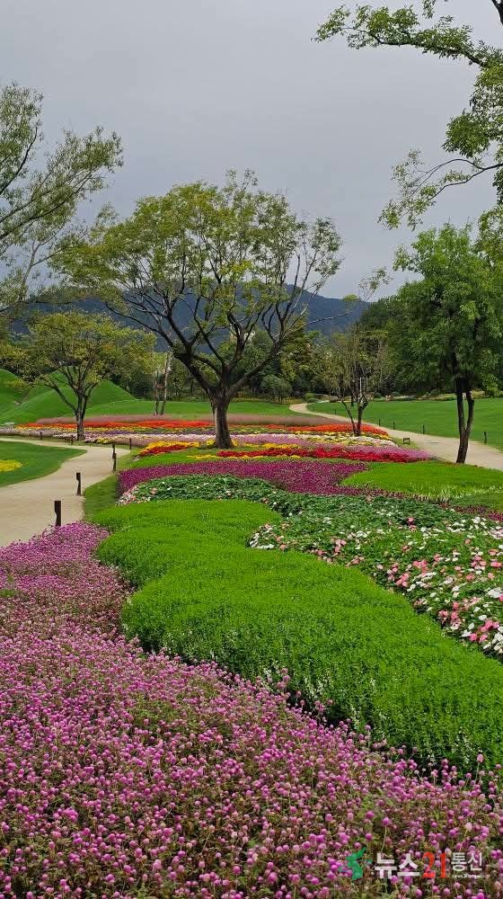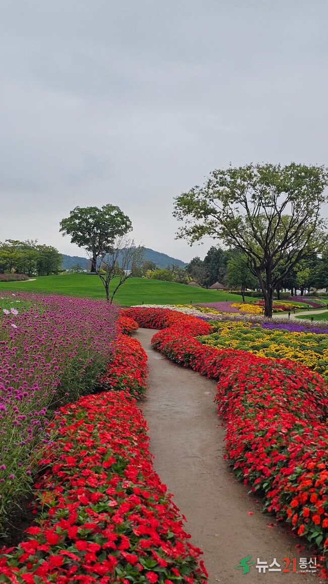 순천만국가정원에 가을이 내려앉자, 화려한 색감의 꽃들이 하나의 물결처럼 펼쳐져 방문객들을 맞이한다. 붉은 빛, 노란 빛, 분홍빛의 꽃들이 조화를 이루며 마치 살아있는 그림처럼 정원을 수놓아, 발걸음을 멈추고 오래 머물게 만든다.