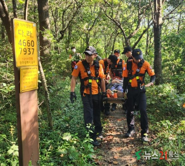 사진_산악구조활동광주광역시 소방안전본부는 16일 “가을철 무등산·어등산 등 광주지역 주요 산을 찾는 등산객이 늘면서 산악사고가 급증하고 있다”며 시민들에게 각별한 주의를 당부했다.