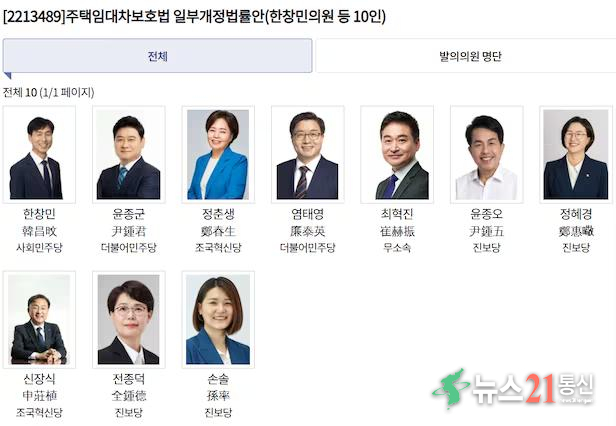 '주택임대차보호법 일부개정법률안' 발의 의원들 명단./국회 의안정보시스템