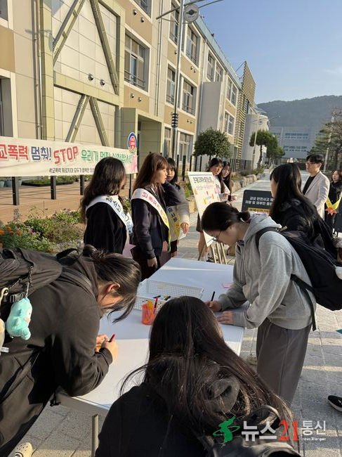 특히 학생들이 직접 작성한 ‘친구사랑 다짐글’은 서로를 존중하고 배려하는 약속의 의미를 담아 큰 호응을 얻었으며 다양한 다짐 메세지를 통해 학생들 스스로 학교폭력 근절 의지를 다지는 계기가 됐다