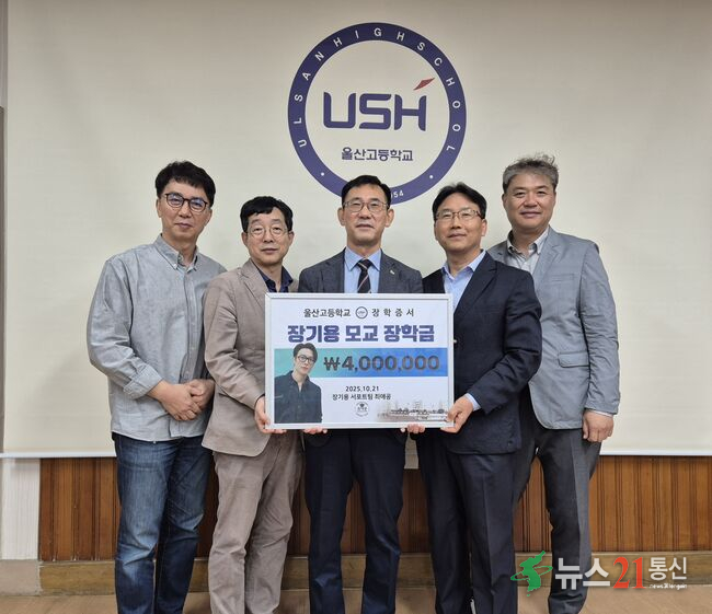 울산 중구 울산고등학교(교장 김주호)는 지난 21일 배우 장기용(울산고 55회 졸업) 팬카페 ‘최애굥’으로부터 장학금 400만 원을 전달받았다.