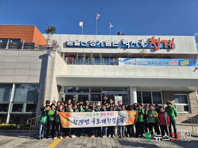 [뉴스21 통신=박철희 ] 청계면(면장 강미간)은 10월 27일, 목포대학교 건너편 도림리 일원에서 새마을부녀회(회장 박란임)와 새마을지도자협의회(회장 이태석) 회원 100여 명이 참여한 가운데 가을맞이 환경정화 활동을 실시했다고 밝혔다.이번 활동은 가을철 낙엽으로 인한 거리 미관 저해와 보행자 안전사고를 예방하기 위해 추진됐다. 참가..