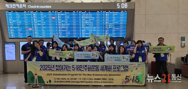 [뉴스21통신/장병기 기자] 광주 청소년 5·18 홍보단 ‘푸른새’ 학생들이 대만에서 5·18민주화운동에 대해서 알린다. 광주시교육청(교육감 이정선)이 10월 28일부터 11월 1일 대만 타이베이, 타이난, 가오슝 일대에서 ‘2025년 찾아가는 5·18민주화운동 세계화 프로그램’을 운영한다. 이번 프로그램은 ‘광주 학생 글...