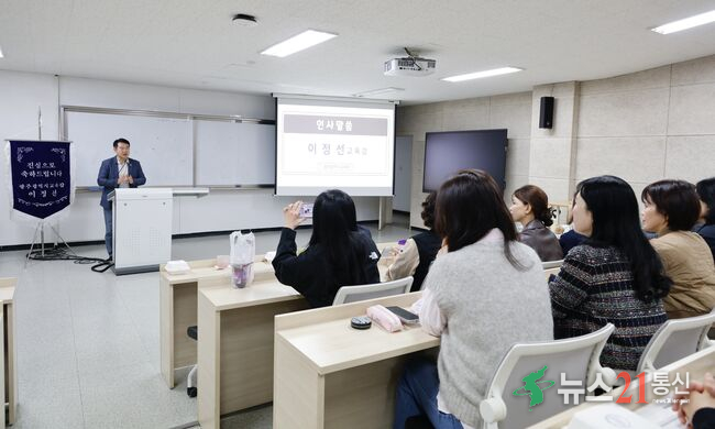 [사진] 광주시교육청, 유치원·어린이집 예비교사 연수 실시[뉴스21통신/장병기] 광주시교육청(교육감 이정선)은 지난 8일 송원대학교 A동 강의실에서 송원대 유아교육과 학생을 대상으로 ‘유보통합 이해 및 통합교육 현장 역량 강화 연수’를 실시했다.
