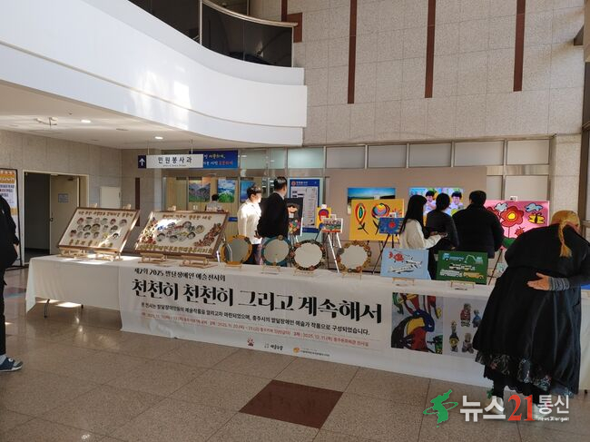충북장애인부모연대충주시지회(지회장 김정희)는‘천천히 천천히 그리고 계속해서’ 구호 아래 발달장애인 예술전시회를 개최한다고 11일 밝혔다.