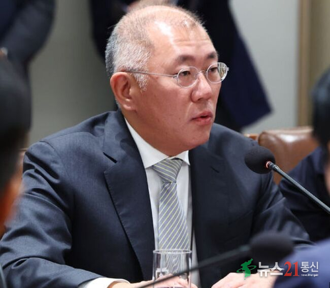 정의선 현대자동차 그룹 회장이 16일 서울 용산 대통령실 청사에서 열린 한미 관세협상 후속