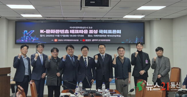 사진_테크타운 국회토론회[뉴스21통신/장병기] 사업비 2500억원을 투입해 차세대 한류문화의 전략적 핵심 거점을 구축하고, 수도권에 집중된 콘텐츠산업 기반을 지역으로 분산하기 위해서는 광주에 ‘K-문화콘텐츠 테크타운’을 조성해야 한다는 목소리가 높다.
