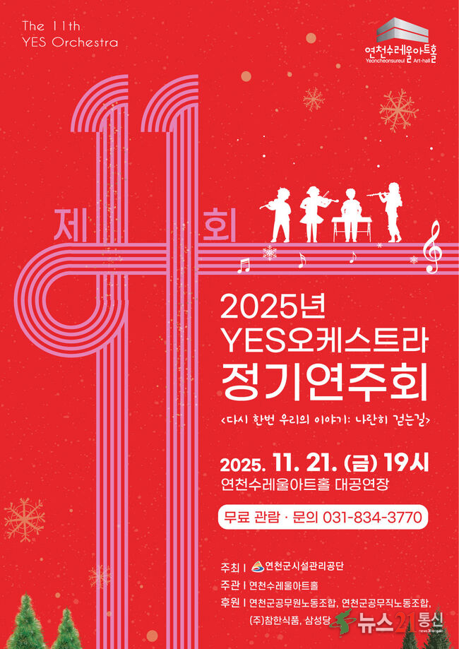 연천군시설관리공단은 YES오케스트라가 창단 11주년을 맞아 오는 11월 21일(금) 오후 7시, 연천수레울아트홀 대공연장에서 제11회 정기연주회를 개최한다고 전했다.