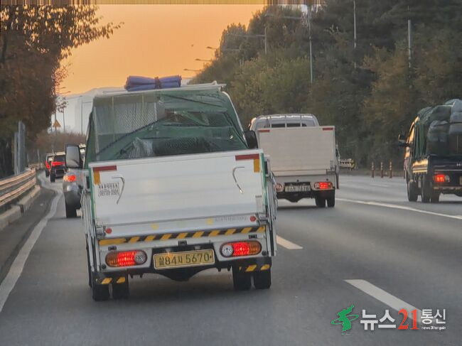 올림픽대로 1차로 화물차 불법주행을 장시간 너무 자연스럽게 운행 하고 있다.