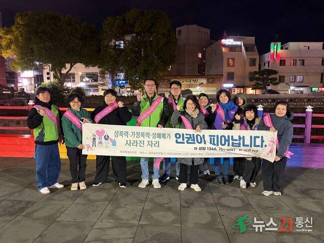 제주시는 지난 17일 저녁 8시 산지천 일대에서 야간 성매매 근절을 위한 민·관 합동 캠페인을 전개했다.