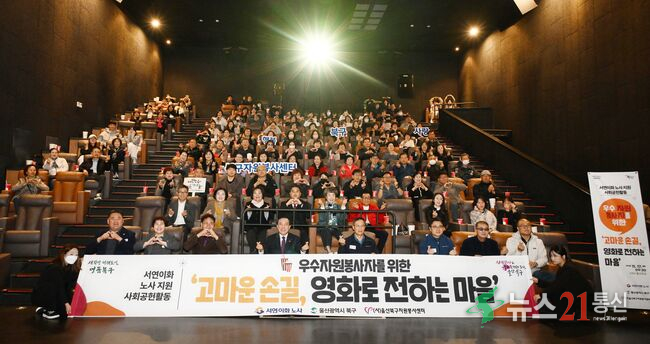 서연이화 노사와 울산북구자원봉사센터는 11월 17일(월) CGV울산 북구 진장점에서 우수 자원봉사자들을 위한 특별한 영화관람 행사 「고마운 손길, 영화로 전하는 마음」을 진행했다.