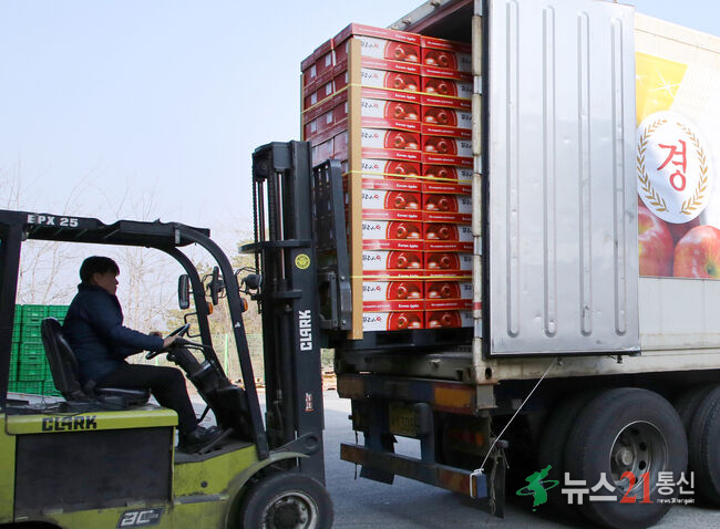 충주시는 충북원예농협 충주거점산지유통센터(APC)를 통해 17일 충주사과를 대만으로 수출하는 선적식을 진행했다.