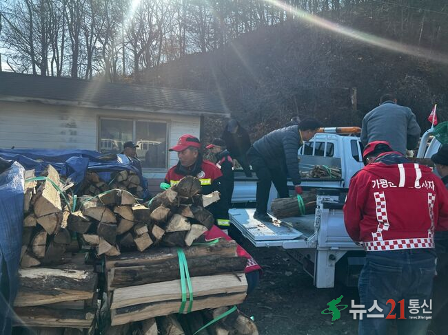 가평군이 18일 가평군산림조합 야적장에서 ‘사랑의 땔감 나누기’를 실시하고 독거노인, 기초생활수급자 등 난방 취약계층 12가구에 총 24㎥의 땔감을 지원했다.