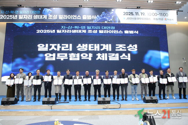 시는 19일 JB연수원 아우름 캠퍼스에서 ‘일자리창출 생태계 조성 얼라이언스’ 출범식을 갖고, 바이오산업 육성을 통한 지역 고용 생태계의 새로운 비전을 선포했다.