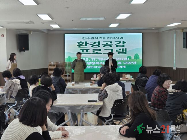 울주군 서생면 지역사회보장협의체(공동위원장 김혁관, 김형수)가 한국수력원자력(주)새울원자력본부의 후원을 받아 19일부터 오는 21일까지 서생면 행정복지센터 대강당에서 ‘환경공감 프로그램’을 운영한다.