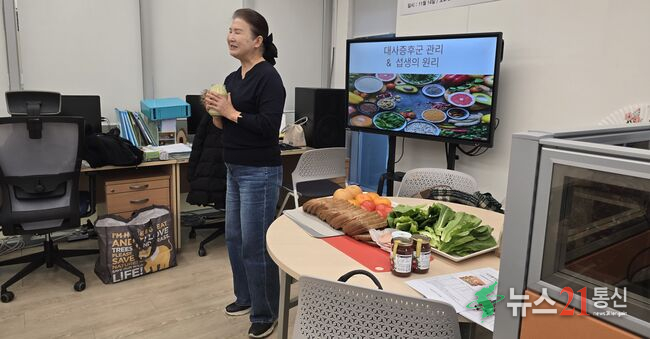 이날 강의는 한국조리기능협회 소속 채영미 강사가 맡아 실제 활용 가능한 비건 요리 레시피를 중심으로 진행됐다. 채 강사는 통곡빵 토스트, 수제 스프레드 만들기, 신선한 손질 방법, 샌드위치 조립 순서 등 조리 과정 전반을 단계별로 상세히 설명하며 참석자들의 이해를 도왔다. 또한 '대사증후군 관리와 식생활'이라는 주제로 식습관 개선의 필요성과 건강한 식단 구성법을 함께 소개해 큰 호응을 얻었다.