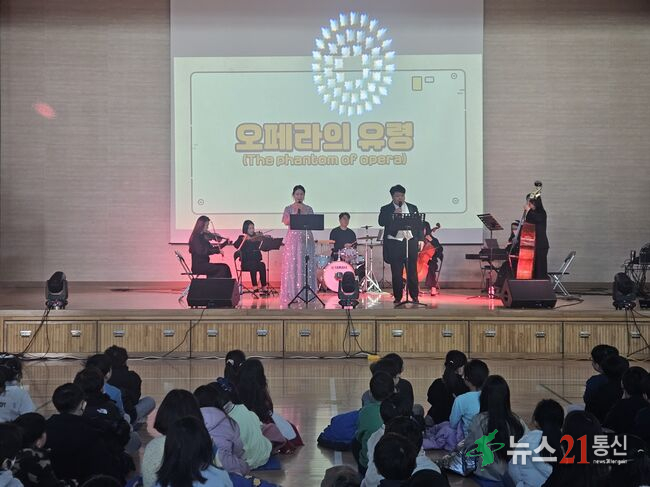 전문 공연팀이 학교를 찾아와 뮤지컬, 영화 OST, 클래식 등 다양한 장르의 음악을 풍성하게 선보이며 학생들의 집중과 호응을 이끌어냈다.
