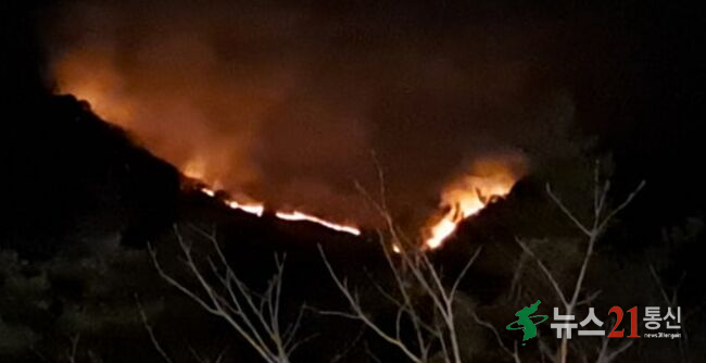 [뉴스21 통신=추현욱 ]22일 강원 양양군 서면 서림리에서 난 산불이 번지면서 지자체에서 인근 주민들에게 긴급 대피를 안내했다.