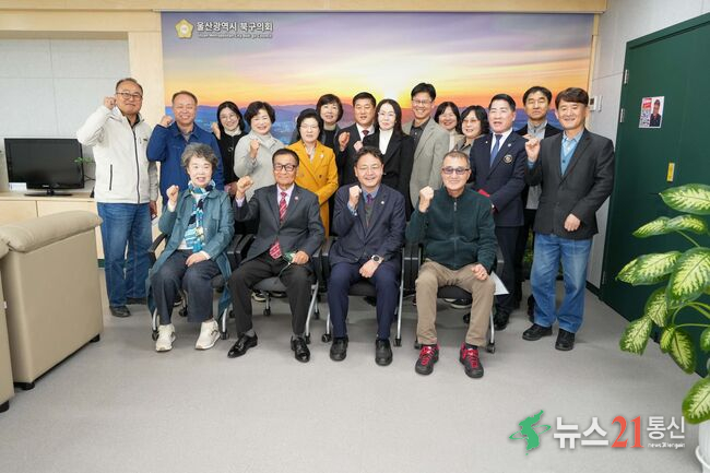 울산북구의회 김상태 의장이 24일 의장실을 방문한 북구자원봉사센터 염선용 이사장을 비롯한 이사진들과 간담회를 갖고 자원봉사 활성화를 위한 지원 체계 강화 방안 등을 논의했다.