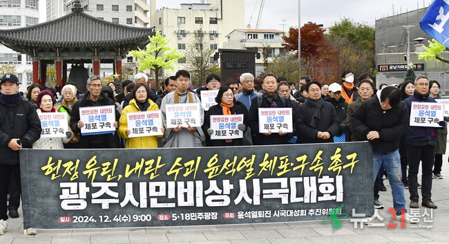 광주시민비상시국대회[뉴스21통신/장병기] 광주광역시는 2024년 12·3 불법 비상계엄 상황에서 시민들이 보여준 ‘빛의 혁명’ 연대와 대응을 기억하고, 광주 출신 한강 작가의 노벨문학상 수상 1주년을 기념해 ‘빛의 혁명, 민주주의 주간’을 12월 1일부터 12일까지 운영한다.
