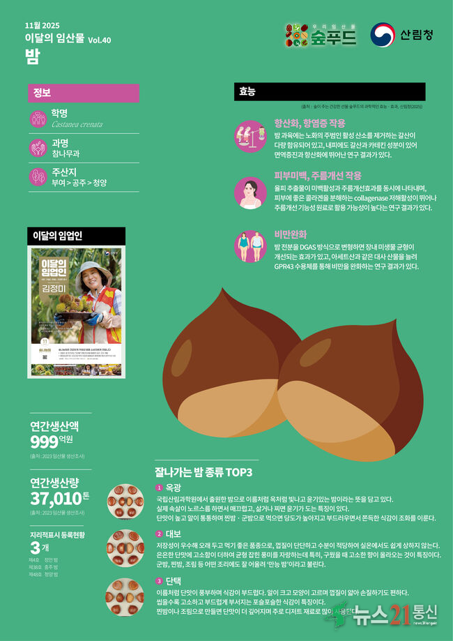 산림청, 11월 이달의 임산물로 ‘밤’ 선정