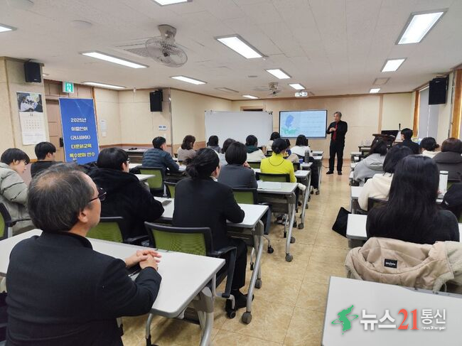 [사진] 광주 송정다가치문화도서관, ‘이중언어 다문화교육 연수’[뉴스21통신/장병기] 광주시교육청 송정다가치문화도서관(이하 송정다가치문화도서관)은 26일 송정다가치문화도서관에서 교원 20명을 대상으로 ‘이중언어(러시아어) 다문화교육 직무 연수’를 운영했다.