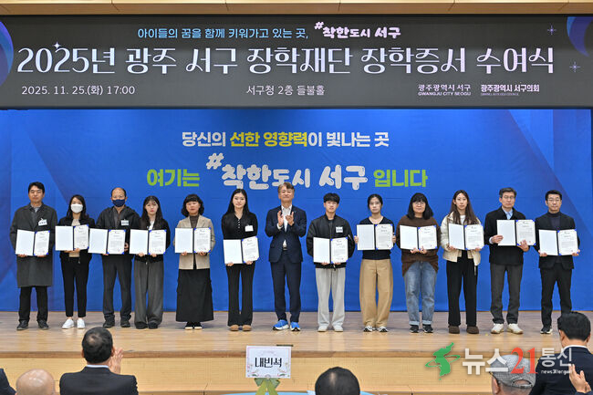 (재)광주광역시서구장학재단(이사장 박찬갑)은 지난 25일 서구청 들불홀에서 ‘2025년 장학증서 수여식’을 열고 관내 장학생 125명에게 장학금 총 1억9천여만원을 전달했다.