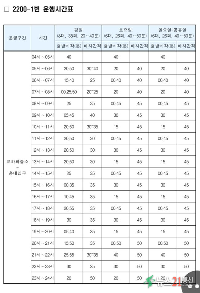 [뉴스21 통신=추현욱 ]파주시는 11월 29일(토) 첫차부터 기존 2200번 노선을 분리하여, 2200-1번 노선을 신설하여 운행한다고 밝혔다.