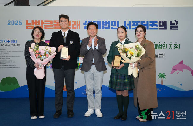 오영훈 지사는 “기후 온난화로 인한 수온 상승, 어업활동으로 발생하는 해양쓰레기는 남방큰돌고래에게 심각한 위협”이라며 “생태법인 지정을 통해 법적으로 보호하는 것이 곧 바다 생태계, 나아가 지구 생태계를 지키는 일”이라고 강조했다.