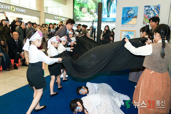 전시·체험 프로그램도 큰 호응을 얻었다. ‘생태법인 서포터즈 전시관’에는 1년간의 활동을 담은 그림 50점이 전시돼 돌고래 보호의 메시지를 생생하게 전달했다. 또한 폐병뚜껑으로 돌고래 모형 만들기, 폐해녀복을 재활용한 돌고래 키링 제작 체험에는 가족 단위 관광객들의 참여가 이어졌다.