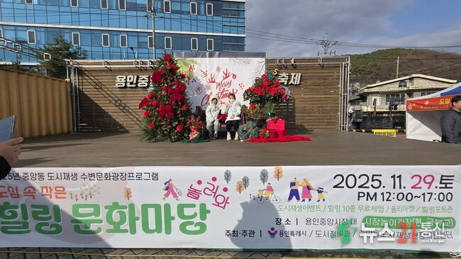 용인특례시는 11월 29일 처인구 중앙동 용인중앙시장 금복교 일대에서 ‘도심 속 작은 힐링 문화마당’ 행사를 개최했다고 3일 밝혔다. 시민 주도의 플리마켓과 힐링 포토존, 생화 플라워 업사이클링, 스마트톡 만들기, 우산 디자인 아트 등 체험 프로그램이 운영되며 1,400여 개 세트 재료가 모두 소진될 정도로 높은 관심을 받았다. 중앙시장 앱 홍보와 ‘SPACE 137 이벤트’가 함께 진행돼 도시재생사업에 대한 시민 이해도를 높였다. 만족도 조사 결과 참여 시민 전원이 만족(매우 만족 88%, 만족 12%)한다고 답했으며, 인기 프로그램은 컵케이크 만들기, 스마트톡 만들기, 플라워 업사이클링, 수경식물 심기 등으로 집계됐다. 시 관계자는 “시민이 도시재생의 가치를 직접 체험하며 일상에서 느낄 수 있는 기회가 됐다”며 “향후 완공될 수변 문화 광장에서 더 풍성하고 지속 가능한 프로그램으로 시민과 만나겠다”고 말했다.