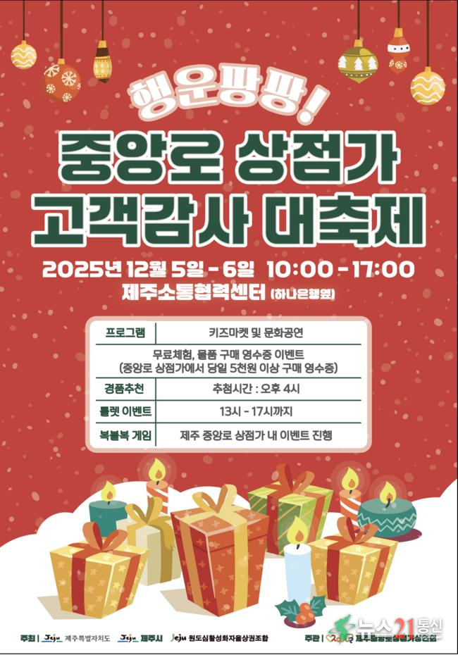 제주시는 12월 5~6일 중앙로 상점가 일대에서 ‘행운팡팡! 고객감사 대축제’를 개최한다.