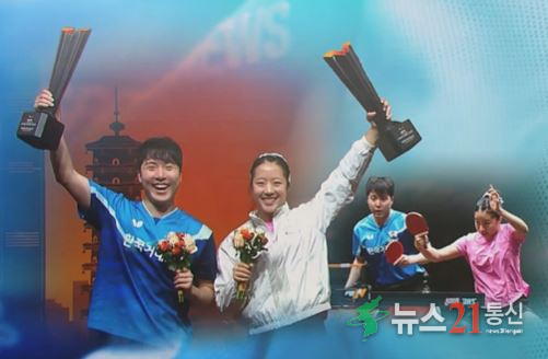 탁구 국가대표 신유빈-임종훈 조가 WTT 파이널스 혼합복식에서 한국 선수로는 사상 처음 금메달을 차지했다.