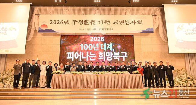 [뉴스21 통신=최병호 ]*사진출처-울산북구청북구는 12일 농소2동 행정복지센터에서 새해 미래도시 비전실현 현장토크를 열고, 주민 의견을 청취했다. 박천동 북구청장과 지역 시·구의원 등이 주민들과 기념촬영을 하고 있다.