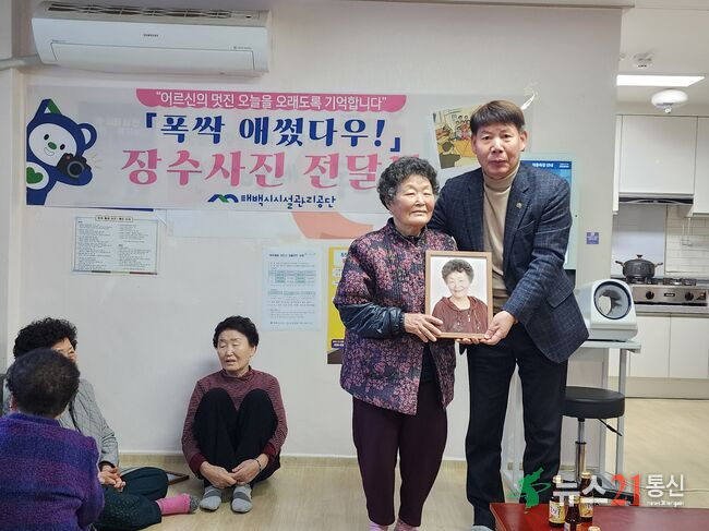 태백시시설관리공단은 지난 18일 목련영구임대아파트 경로당에서 「폭싹 애썼다우! 장수사진 전달 행사」를 열었다.