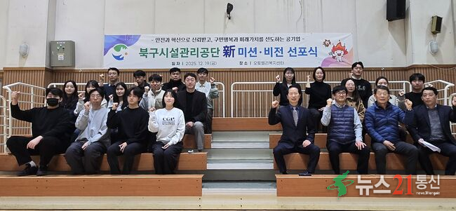 울산북구시설관리공단(이사장 임정식)은 19일 공단의 새로운 미션·비전 선포식을 개최하고, 구민 행복 증진과 지속가능한 지역발전을 위한 공공서비스 혁신 실천 의지를 다졌다고 밝혔다.