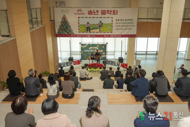 서천군은 지난 22일 군청사 로비에서 ‘2025년 청사 송년 음악회’를 열어 군민과 직원들에게 문화 향유의 기회를 제공했다.
