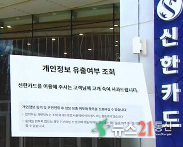 신한카드에서 가맹점주 19만 명의 개인정보가 유출되는 사고가 발생했다.