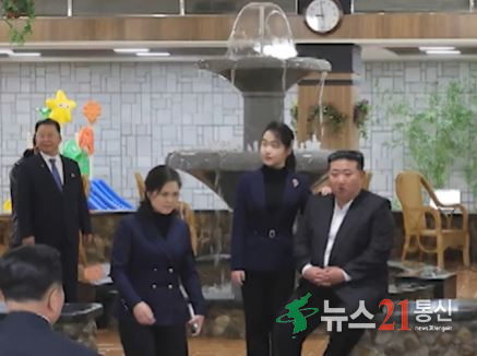 북한 김정은 총비서는 딸 김주애와 함께 지난 20일 백두산 삼지연 지구의 관광호텔 이깔·밀영 호텔 준공식에 참석했다.