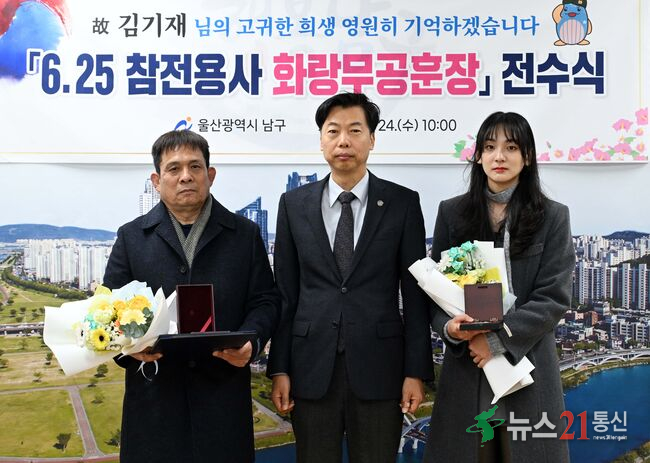 울산 남구(구청장 서동욱)는 24일 6·25전쟁에 참전해 무공을 세운 고(故) 김기재 상병의 유족에게 화랑무공훈장을 전수했다.