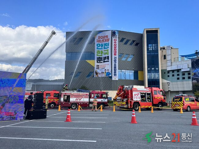 이번 훈련은 지진으로 인한 다중 밀집 시설 대형 화재 상황을 가정해 실제 재난 발생을 전제로 한 현장 대응·지휘·수습 과정을 점검하는 데 중점을 뒀다.