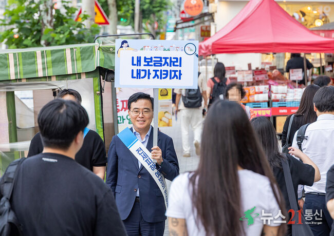 사진=강서구, 진교훈 구청장이 2025년 6월 까치산역 일대에서 열린 ‘전세사기 피해 예방을 위한 길거리 캠페인’에 참여해 주민들에게 피해 예방의 중요성을 안내하고 있다.