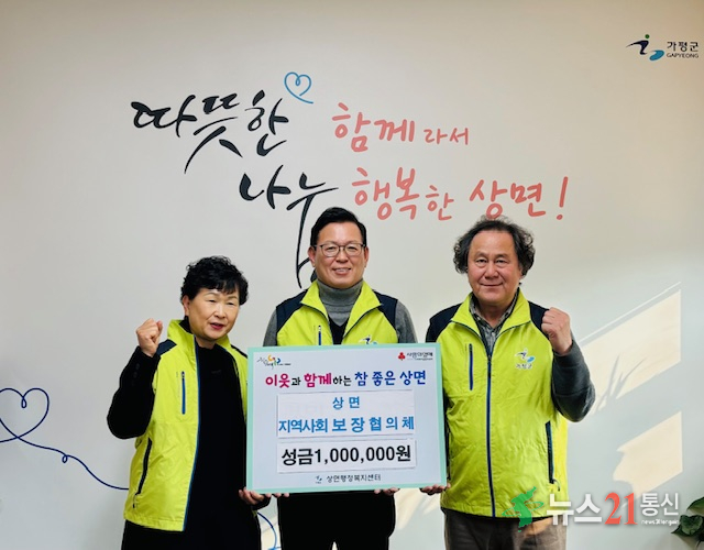 가평군 상면 지역사회보장협의체(지사협)는 29일 회원들이 모은 회비 100만원을 상면 행정복지센터에 기탁했다.