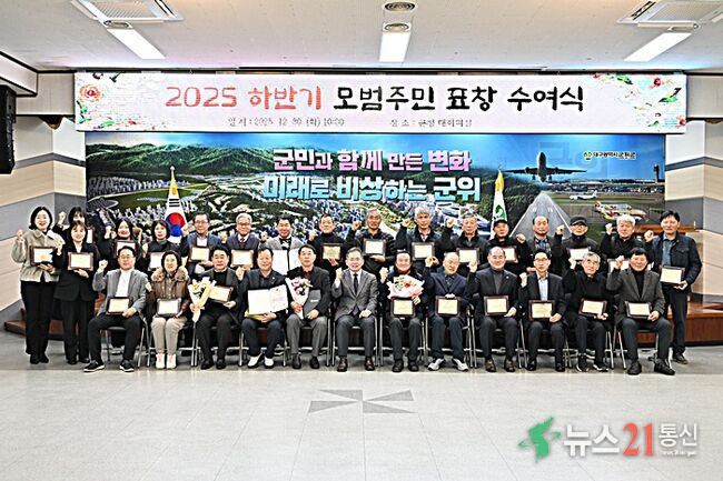 군위군은 30일 오전 10시 군청 대회의실에서 수상자와 가족, 부서장 등 50여 명이 참석한 가운데 2025년도 하반기 모범 주민에 대한 표창 수여식을 개최했다.