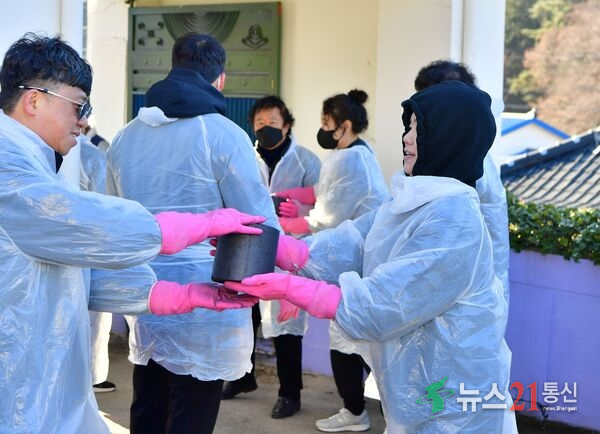 장성군이 훈훈한 나눔 소식을 전했다. 군에 따르면 30일 오전 (사)전남지체장애인협회 회원 등 100여 명이 연탄 1200장을 장성읍·황룡면 소재 저소득 가구 5곳에 전달했다.