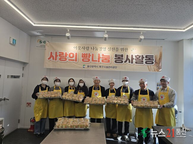 울산광역시북구시설관리공단(이사장 임정식)은 취약계층 지원 사업에 적극 동참하기 위하여 12월 30일 ‘사랑의 빵 나눔 봉사활동’을 실시했다.